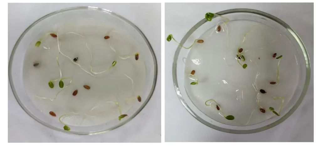 Подбор препаратов для предпосевной обработки семян необходимо осуществлять в соответствии с «Государственным реестром…», учитывая результаты фитоэкспертизы семенного материала. Фитоэкспертизу семян льна масличного и льна-долгунца проводят с использованием биологического метода анализа на агаризованной питательной среде (рисунок 1) и на влажной камере (рисунок 2). С помощью данных методов возможно определить зараженность семян возбудителями антракноза (Colletotrichum lini), фузариоза (Fusarium spp.), крапчатостью (Fungus sterilis=Ozonium vinogradovi), сапротрофными грибами, вызывающими плесневение семян (Alternaria spp., Cladosporium spp., Penicillium spp. Mucor spp., Rhizopus spp.), а также бактериальными контаминантами.